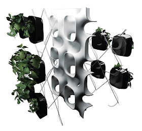 A series of containers house the plants with trellis in-between, allowing the vegetation to climb and create an uninterrupted face of vegetation. Water and nutrients can be provided mechanically with either a synthetic or soil based growing medium.