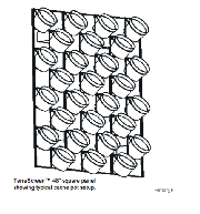 Panels of pre-planted vegetation are fitted to a support system that provides structure and a mechanical watering system. Pre-planting means that an instant green effect can be achieved upon completion. Composition of the modules will vary depending on the requirements of the vegetation, but will need to contain nutrients and material for the roots to hold. Soil can be used, but due to its weight it can only realistically be of use for small scale walls.